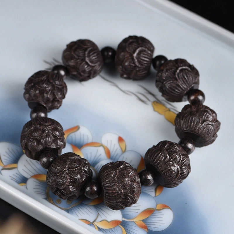 Rosewood Jade Lotus Pod Calabash Bracelet - Mindful Prayer, Zen Jewelry