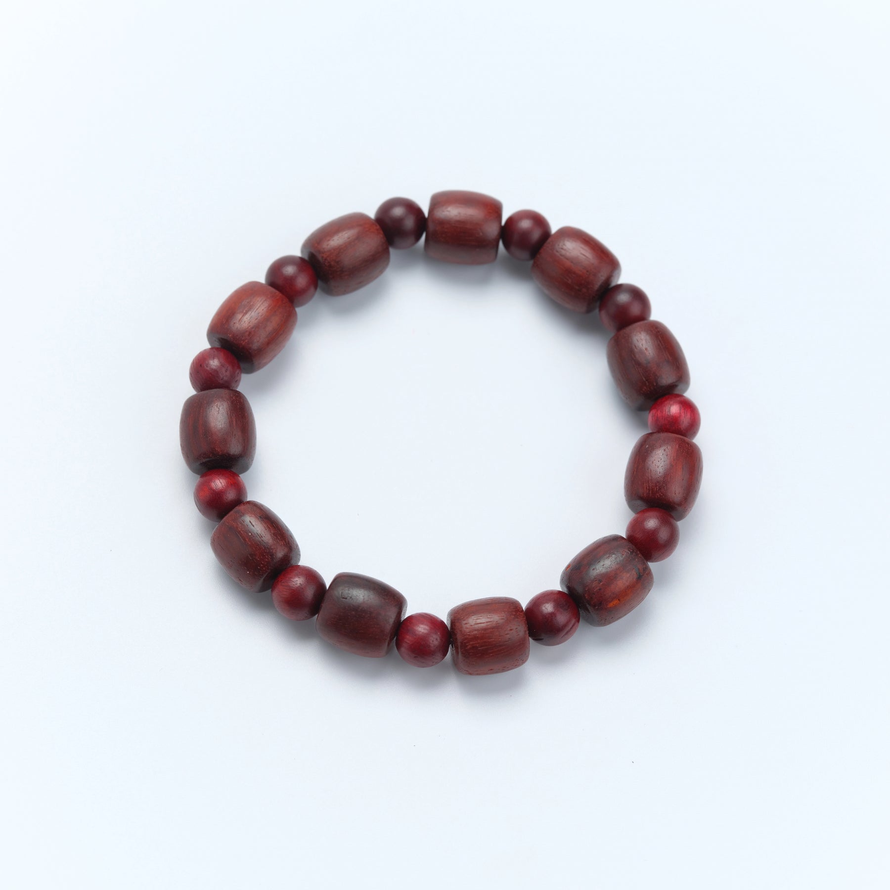 This bracelet is made from small-leaf red sandalwood, reddish brown, antique and stable, with barrel-shaped bead design. It functions to calm the mind, embrace blessings, supplement Wood element, boost fortune, and cultivate wisdom, suitable for business socializing, meditation and daily wear, ideal for those needing Wood element in numerology and business people.