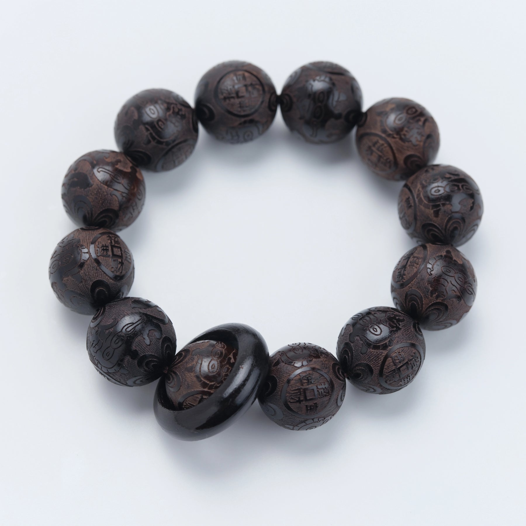 Crafted from premium Yunnan Laoshan sandalwood and featuring antique copper fortune coins. Laoshan sandalwood has high density and rich aroma, used in Buddhism for incense, protection, and meditation aid; it symbolizes tranquility and auspiciousness in modern times. The copper coins, made of antique copper, can promote local blood circulation and carry cultural meanings of wealth attraction and qi gathering, representing harmony with nature and wealth accumulation. Ideal for daily wear, meditation, and suitable for business professionals and traditional culture lovers. Avoid moisture and fire when wearing; clean copper coins with a soft cloth regularly, and let Laoshan sandalwood be nourished by body oils naturally, allowing you to absorb wealth and auspiciousness in tranquility.